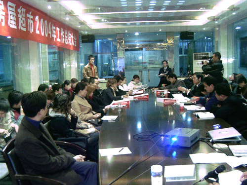 2004年12月17日上午,百居易房屋連鎖超市在總部南京路二樓會議室召開2004年工作總結(jié)大會,38家連鎖店負(fù)責(zé)人和總部各部門全體員工以及國佳集團(tuán)、市房產(chǎn)局市場處相關(guān)領(lǐng)導(dǎo)參加了會議。
