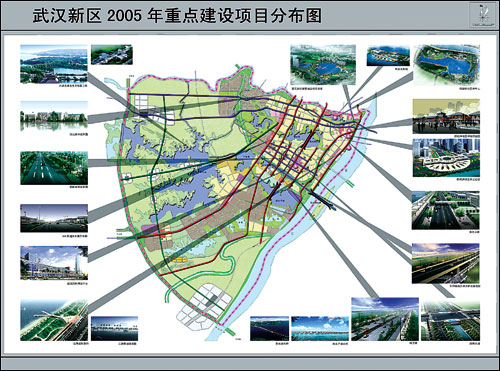 借助17個(gè)項(xiàng)目,整個(gè)武漢新區(qū)建設(shè)要取得階段性進(jìn)展:三大功能組團(tuán)初步凸現(xiàn);“五縱五橫”道路骨架基本形成;“六湖連通”的水系生態(tài)網(wǎng)絡(luò)初現(xiàn)雛形;四新區(qū)域主干道骨架基本形成。