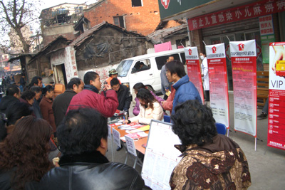百居易房屋連鎖超市“2005年迎新春送福進(jìn)小區(qū)免費(fèi)咨詢活動(dòng)”于近日在橋口區(qū)拉開帷幕。元月15日、16日,利用周六周日雙休期間,百居易橋口片區(qū)的水廠店、古田二路店、東西湖店等三個(gè)連鎖店在總部的組織下,分兩組進(jìn)入云鶴園小區(qū)、易家墩小區(qū),在將"福"送出的同時(shí),在現(xiàn)場(chǎng)開展了房地產(chǎn)中介服務(wù)免費(fèi)咨詢活動(dòng)。根據(jù)這兩天的統(tǒng)計(jì),現(xiàn)場(chǎng)接受市民咨詢500余人次、發(fā)放宣傳單600余張、并且接受多宗現(xiàn)場(chǎng)的出售、求購委托。百居易總部派出的兩組工作人員在現(xiàn)場(chǎng)就廣大市民比較關(guān)心的“二手房按揭貸款提前放款”及“押舊購新”業(yè)務(wù)進(jìn)行了細(xì)心的介紹,其中押舊購新業(yè)務(wù)吸引了較多有二次置業(yè)需求市民的目光。此次活動(dòng),不僅讓更多的市民了解到百居易服務(wù)品牌的專業(yè)和規(guī)范,也讓百居易更加貼近廣大市民的生活,了解市場(chǎng)需求,幫助市民解決實(shí)際疑難!從而讓“百姓安居更容易"的服務(wù)理念真正落到實(shí)處!隨后,百居易其他連鎖店也按照總部統(tǒng)一部署積極籌備,將于春節(jié)前陸續(xù)在全市各個(gè)城區(qū)全面展開進(jìn)小區(qū)免費(fèi)咨詢活動(dòng)。